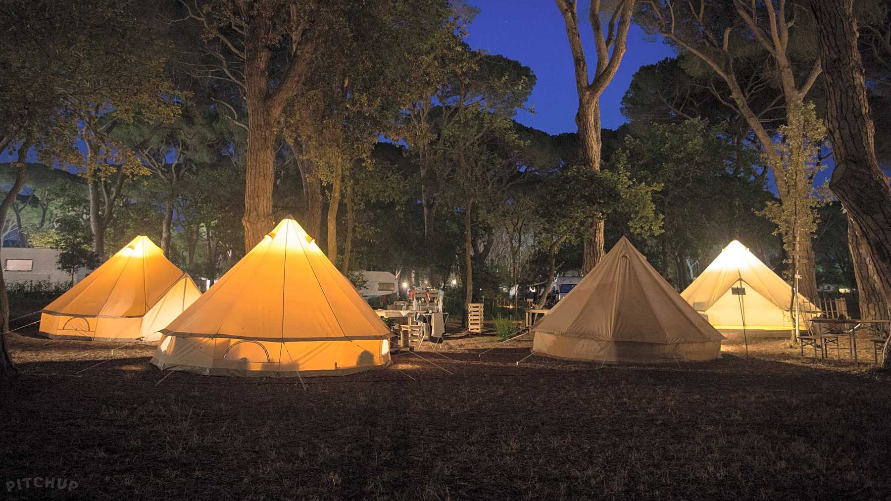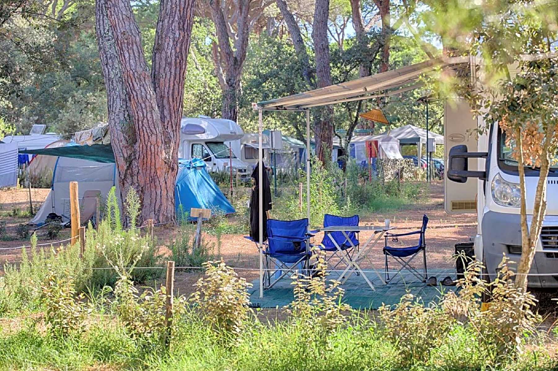 Es besteht die Möglichkeit Zelte Mobilheime und Wanderhütten zu mieten. Dank den Pineienwälder ist die Hitze auch ohne Klimaanlage gut ertragbar. Der Campingplatz erhält von uns in der Gesamtbetrachtung vier Sterne.